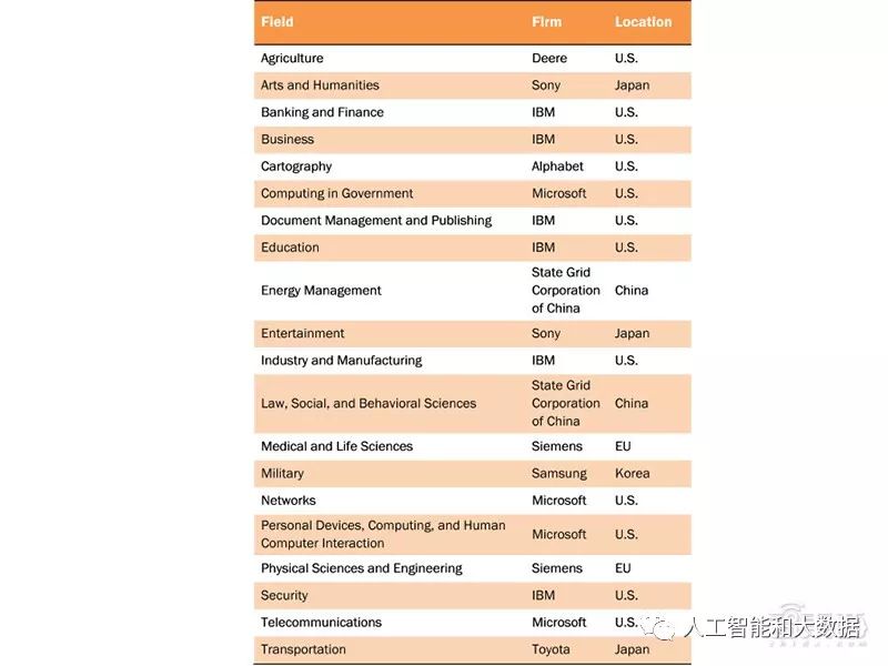 ▲全(quán)球科技公司在應用領域AI專利(lì)係列排名
