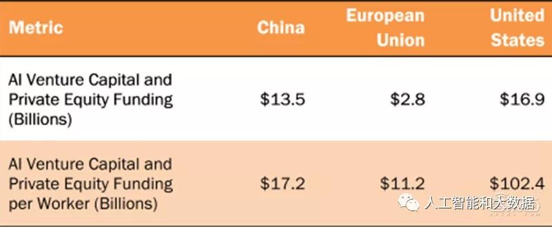 僅在2017年,中、美兩國AI創企獲得的風險投資和私募股權融資(zī),比歐盟從2016年至(zhì)2018年加起來的都多。