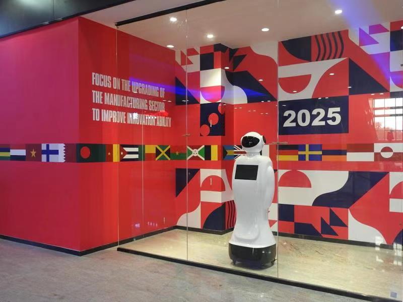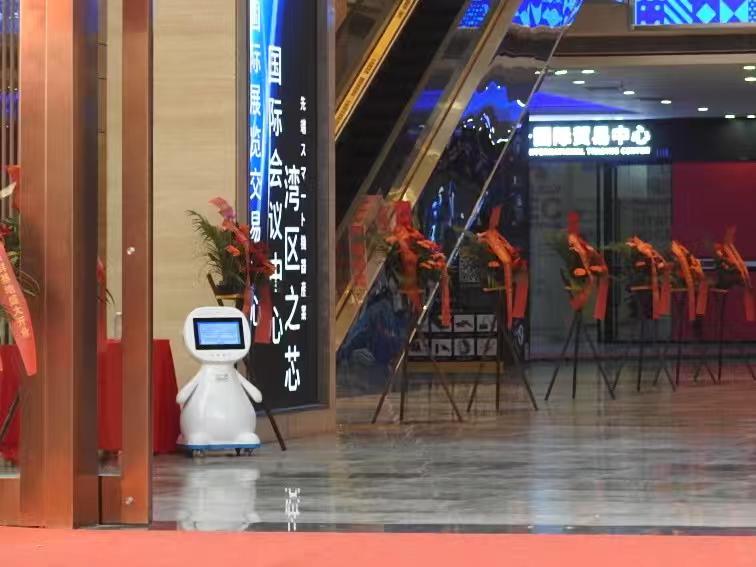 參加東莞虎門灣區智能製造展覽(lǎn)會活(huó)動,做為展覽區服務(wù)機器人,為參觀的(de)客戶提供場地及展(zhǎn)館內企業信息。