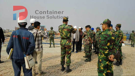 On Sep. 15th, 2014, one group of visitors from CHINA ZHONGTIE MAJOR BRIDGE ENGINEERING GROUP CO.,LTD. came to our company and discussed details of the Padma bridge project of 20000m2 prefab house. Now the project is almost done, let check the project now. On Nov. 3rd, 2014, Defense Minister of Bangladesh come to the site for checking.