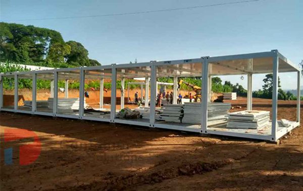 After the deal was finished and the flat pack container houses were delivered, the construction was about to begin. In this mid May, when everything was done, engineer of Tiandi Color Steel Mr. Hang Jiarong and the construction workers began to install these containers shipped from China.