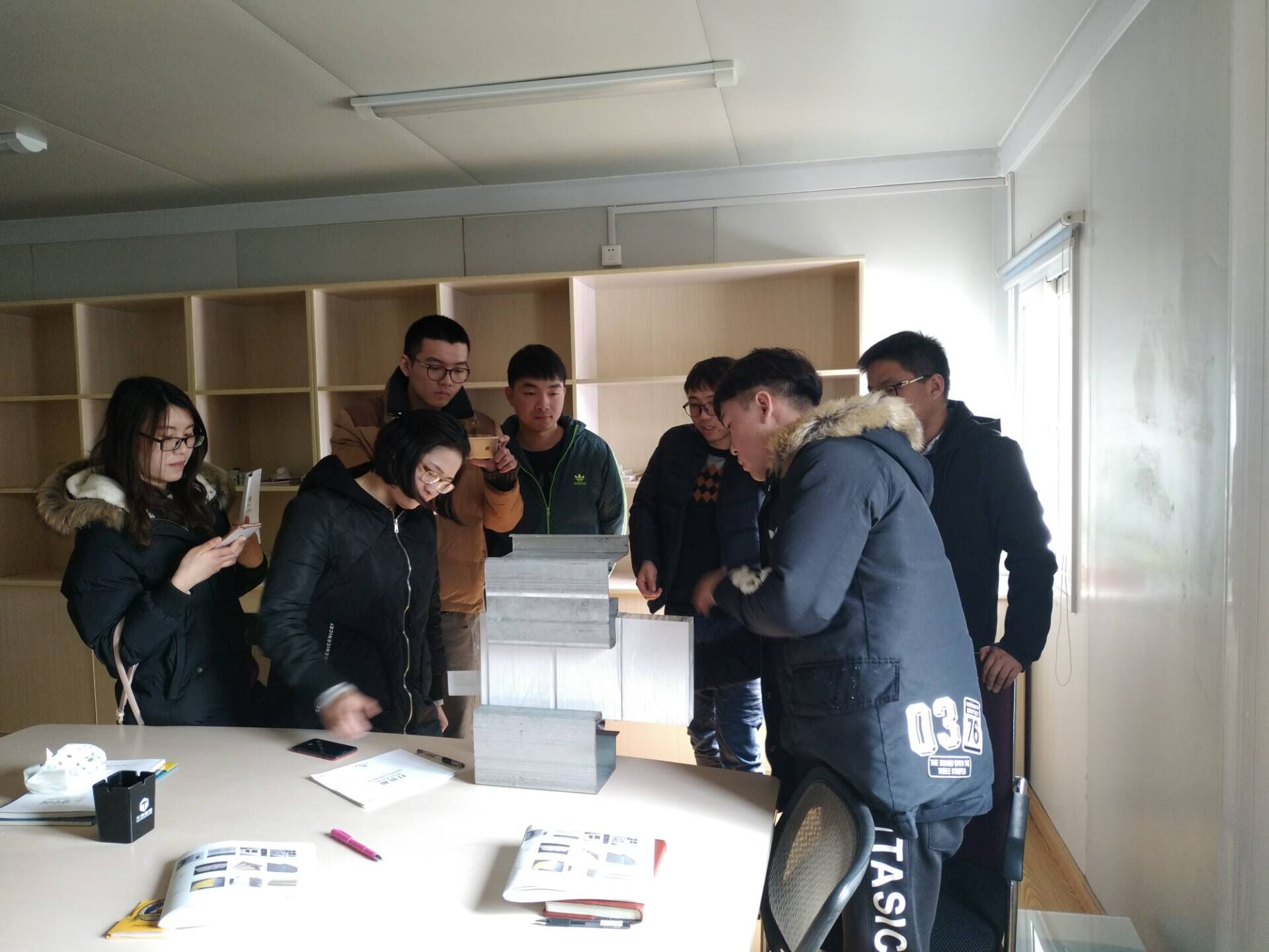 2. 樣品介紹:當(dāng)天下午,曹宇總監(jiān)帶領(lǐng)大家在樣品間進行實樣展(zhǎn)示。對於(yú)新人來(lái)說,角柱,立柱,夾板,防水等等這些東西都處(chù)於理論的基礎上,實物是最好的老師,曹宇總監通(tōng)過如何將角柱和立柱連接,如何處理頂板防水問題,如何處理內部夾板固定等問(wèn)題,像我們展示了一間模塊化房屋的(de)骨架是怎樣形(xíng)成的。期間,對於牆板材料(liào),門窗,開關,地板等細(xì)節都詳細的解答,並且讓(ràng)每一個人都上手操作體驗,為未來接待客戶(hù)打下(xià)堅實的基礎。