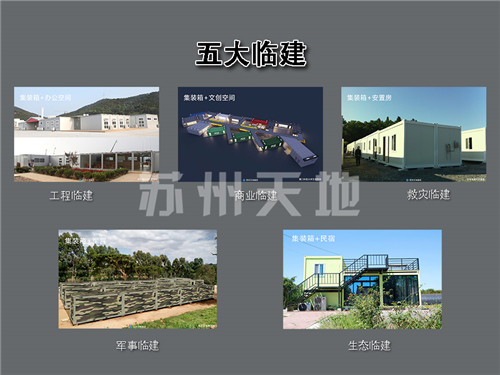 如今,蘇州草莓视频IOS下载通過十幾年(nián)的技術創新和產品創新實(shí)現了標準化(huà)、模塊化、通用化、係列化、工廠化的生產,以打包箱為主體,形(xíng)成了能夠滿足客戶不同定製需求(qiú)的五大臨建係列產品:工程臨建、商業臨建(jiàn)、救災臨建、軍事臨建和生(shēng)態臨建臨建。