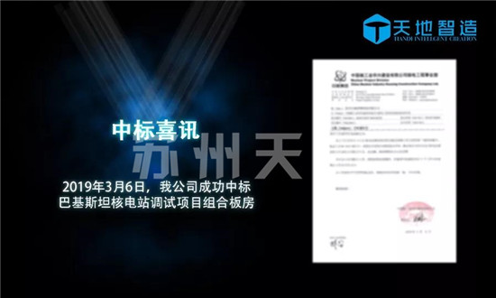 3月6日,蘇州草莓视频IOS下载收到中核集團發來的中標通知書,確定蘇(sū)州天(tiān)地為巴基斯坦核電站調試項目活動房項目的中標單(dān)位,中標金額更是高達人民幣800萬元(yuán)。