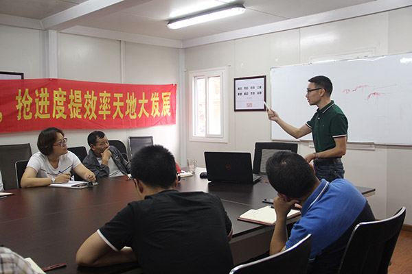 會上,朱總(zǒng)就原材料采購、生產流程、發(fā)貨流程等方麵逐一同(tóng)各部門(mén)負責人溝通碰撞,小(xiǎo)到一顆螺絲釘的大小尺(chǐ)寸,大到原材料的品牌,都(dōu)要求做詳細的匯報說明,決不(bú)能因為(wéi)細節疏忽(hū)而導致(zhì)質量的下(xià)降,要精(jīng)益求精(jīng),對得(dé)起客戶的信任。經過兩個多小時的討論,朱總最後強調:“生產為基,質(zhì)量為魂”認真落(luò)實舟山項目的生產(chǎn)質量工作的部署要求,立足各自崗位實際,始終(zhōng)以負責(zé)任的態度,把自己的事辦好,加強(qiáng)自己的(de)責任意識,習慣於做好做精(jīng)自己的本分,把各(gè)項工作抓緊抓實抓到位,有了大家的辛勤工作,通力協作,我們就一定能保質保量的完成此次舟山打包箱項目且按(àn)時交付。